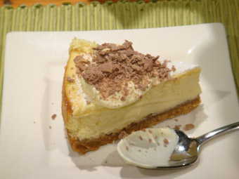 Made this a couple of months ago when Tina came to visit. Pretty standard cheesecake but seriously scrumptious. Best made with full fat ingredients, the low-fat stuff just doesn’t have the flavour. Tina decided to add chocolate flakes at the last moment – only problem is that we didn’t add enough.