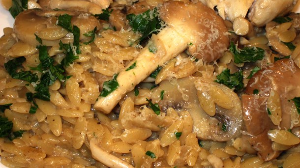 - In a separate pot of boiling salted water, cook the risoni until half cooked then drain and add to the mushroom pan. Stir risoni mushroom mixture and cook a la risotto. Add stock if the mixture dries out too much. I like to cover with the lid so all the pasta absorbs the mushroom flavoured liquid, rather than evaporating.